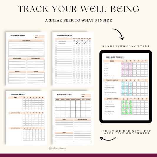 Self-Care Bundle | Checklist Printable | Daily Wellness Tracker